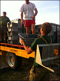 This week we finished the Cabernet Sauvignon and with it the entire harvest at Latour. At 7.30pm on Monday 26th September the last grapes were picked, packed and sent back to the Chateau. After 15 solid days of picking, the team had managed to harvest the entire 2011 crop without a break, and there were exhausted smiles all over the fields. I imagine that not only was this one of the earliest harvest but also one of the quickest.
