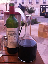 On Thursday evening we headed out for our own "end of the harvest celebration dinner". We were back at the Cafe Lavinal in Bages where we had eaten with Jean-Charles Cazes the week before. With the physical exercise of the harvest now over, we wanted to go for the healthier option – so we both had foie gras, confit de canard and a Chocolate Selection (low fat of course). With us we took the Eglise Clinet 1998 that we mentioned in our blog on Denis Durantou. Over dinner we discussed the long and tiring harvest, and how happy we were to have been involved in the very first stages of the winemaking process. We started our evening with 2008 Trimbach Gewürztraminer, which was a fresh and fruity start to the evening. The aromas and flavours of lychees and rosewater, and warm finish from the moderate alcohol were enjoyable and went with our starters, though perhaps a little more acidity would have better cut through the food.
