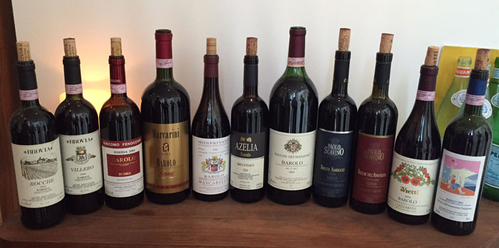 That was enough to inspire me to do something about it and, a few phone calls and emails later, I had recruited a merry band of merchants for a 2004 horizontal dinner. Between the 10 of us, we assembled a line-up of 11 wines from nine different producers. Barolo producers generally fall into two camps: the ‘traditionalists’ and the ‘modernists’ so I decided to split the producers up into these two categories and serve them alphabetically by producer. I’ve included a few brief tasting notes from the evening below (along with Galloni’s scores as well).