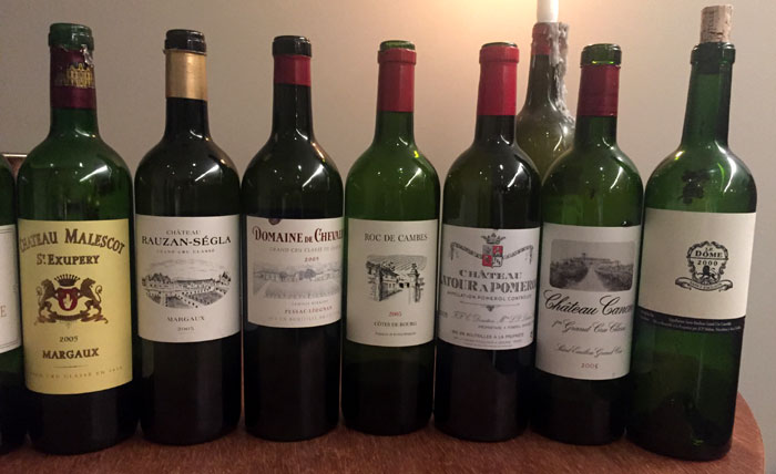 With that in mind, we set the theme as ‘Bordeaux 2005 under £50 per bottle en primeur’ because, thanks to the relative affordability, these are the wines that one is more likely to be drinking on a regular basis over the coming decades. It was also agreed that, if nothing else, wines at this quality level would be more approachable at this stage of maturity.