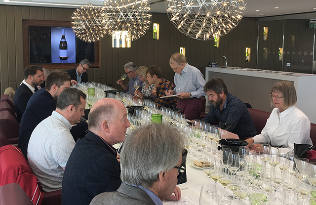 On the right descending: Joss Fowler, Thomas Parker MW, Derek Smedley MW, Stephen Browett and Jancis Robinson MW - with Paul Brajkovich at the head of the table |