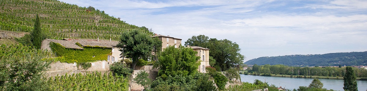 You have to see Château Grillet to truly appreciate it. An amphitheatre of terraced vines is carved into the perilously steep slopes overlooking the Rhône river. The small property sits below the majority of the vineyard, with lower terraces spreading right and left, and some new plantings curling away upriver towards Lyon.
